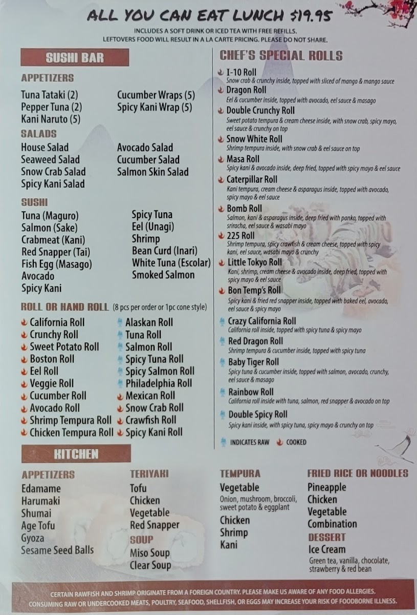 Welcome to Sushi Masa Lafayette, a vibrant spot nestled on Ambassador Caffery Parkway, known for its exceptional All-You-Can-Eat (AYCE) sushi experience. This restaurant has quickly become a local favorite, delighting guests with its fresh, meticulously crafted sushi and a wide variety of specialty rolls. Customer feedback highlights the impressive quality, with mentions of standout options like the i10, Dragon, and LSU rolls.